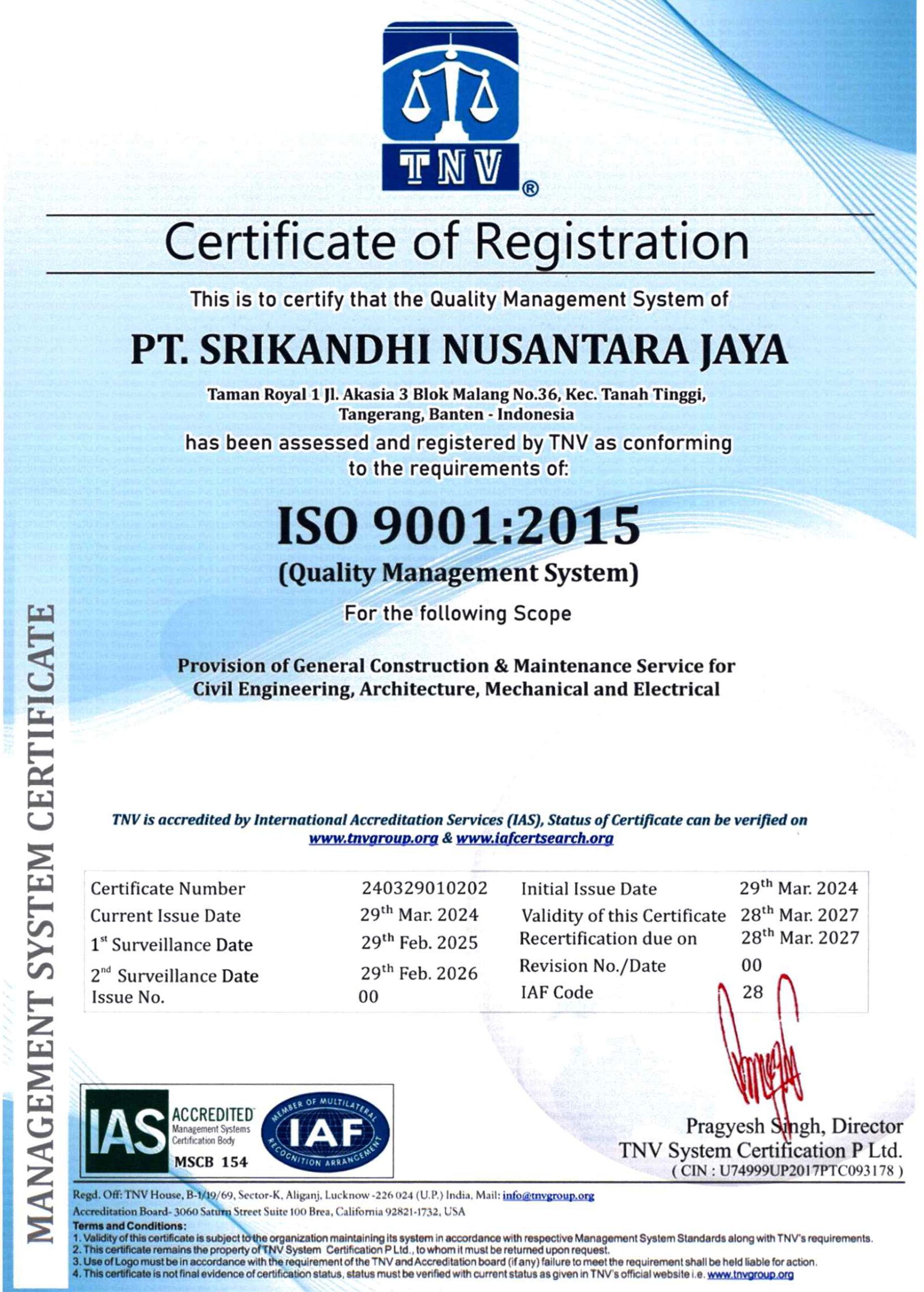 Dengan Prinsip “Pelayanan yang Berkualitas” PT Srikandhi Nusantara Jaya selalu berupaya menawarkan dan memberikan solusi terbaik dalam melaksanakan pekerjaan sesuai kontrak yang disepakati. Dengan pengalaman yang teruji kami bangga untuk memberikan solusi dan layanan berkualitas untuk menggapai tujuan proyek Pelanggan